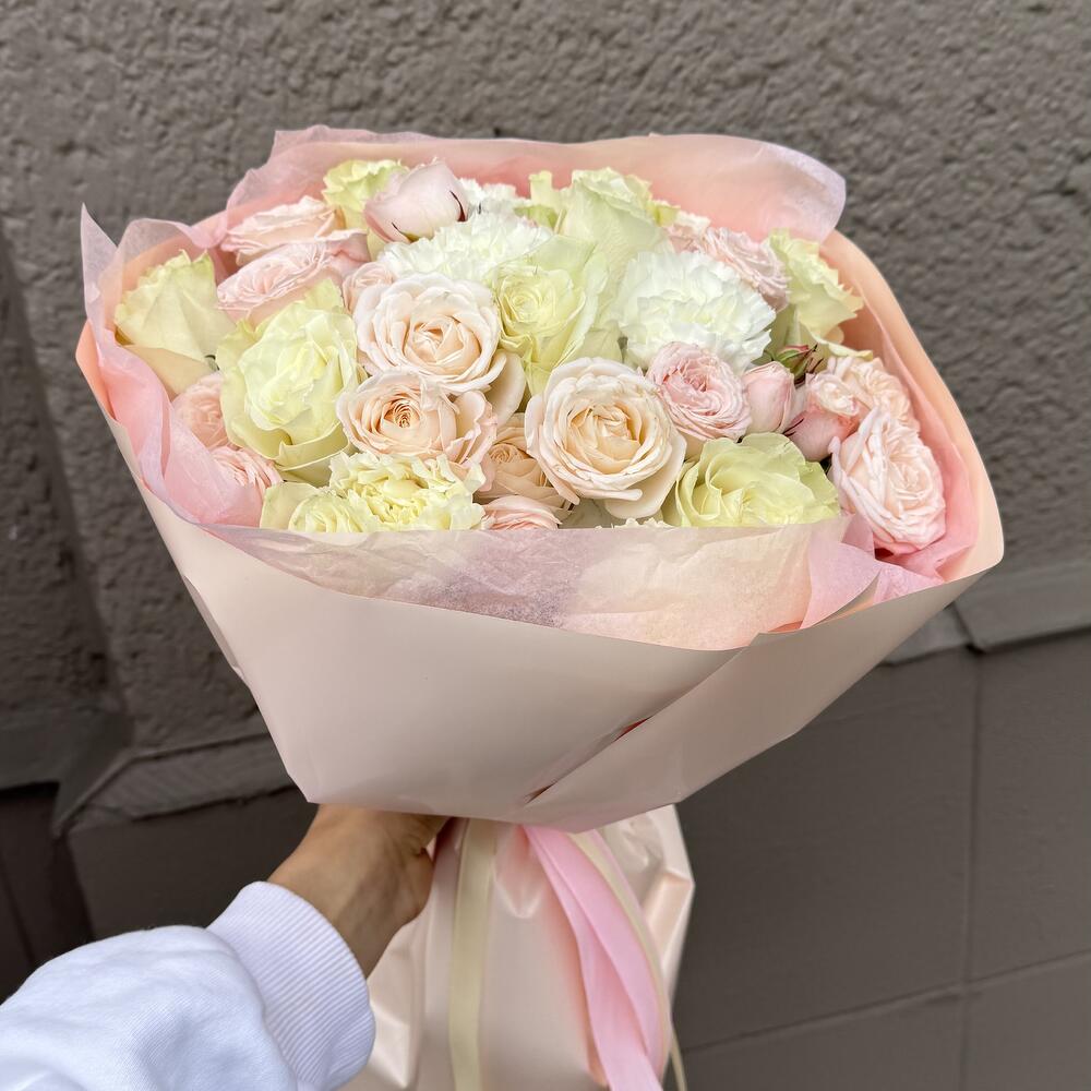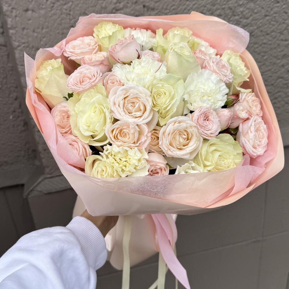 dianthus - 8 pcs rose - 8 pcs spray rose - 3 pcs