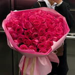 A spectacular bouquet of 51 raspberry roses is the quintessence of elegance, passion, and refined style. The intensely raspberry shade of the petals catches the eye and immediately evokes admiration, creating a composition that makes an impression from the first glance. Each rose has been carefully selected so that together they create a harmonious, luxurious bouquet — full of depth of color, freshness, and unique symbolism. Raspberry roses express admiration, gratitude, and strong, sincere feelings, which is why this bouquet is perfect as a gift for a loved one, an expression of congratulations, or a special gesture for no particular occasion. This is a composition that says more than words — it delights with its intensity, brings a touch of magic, and remains memorable for a long time.