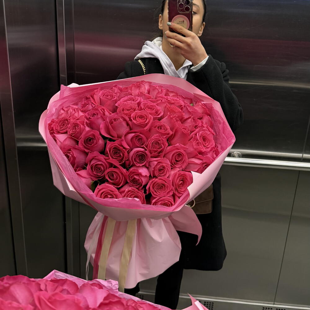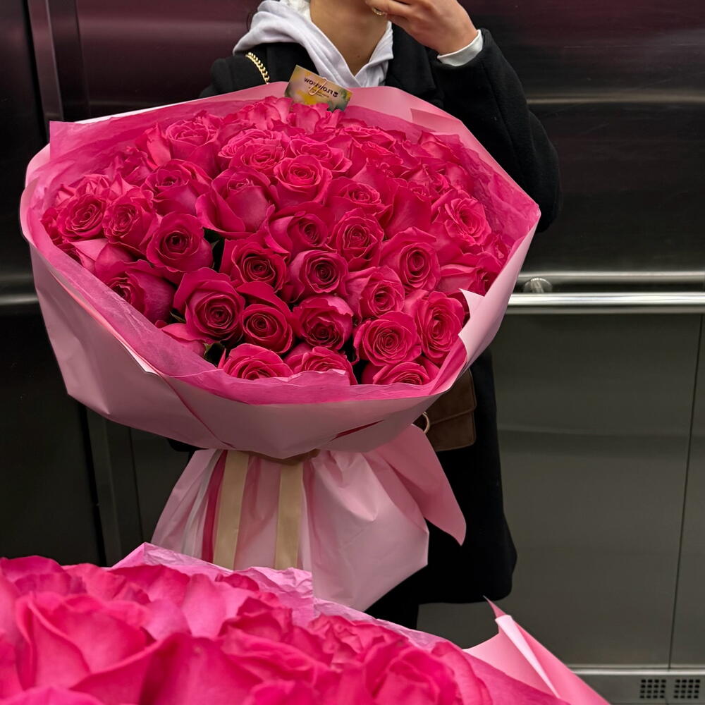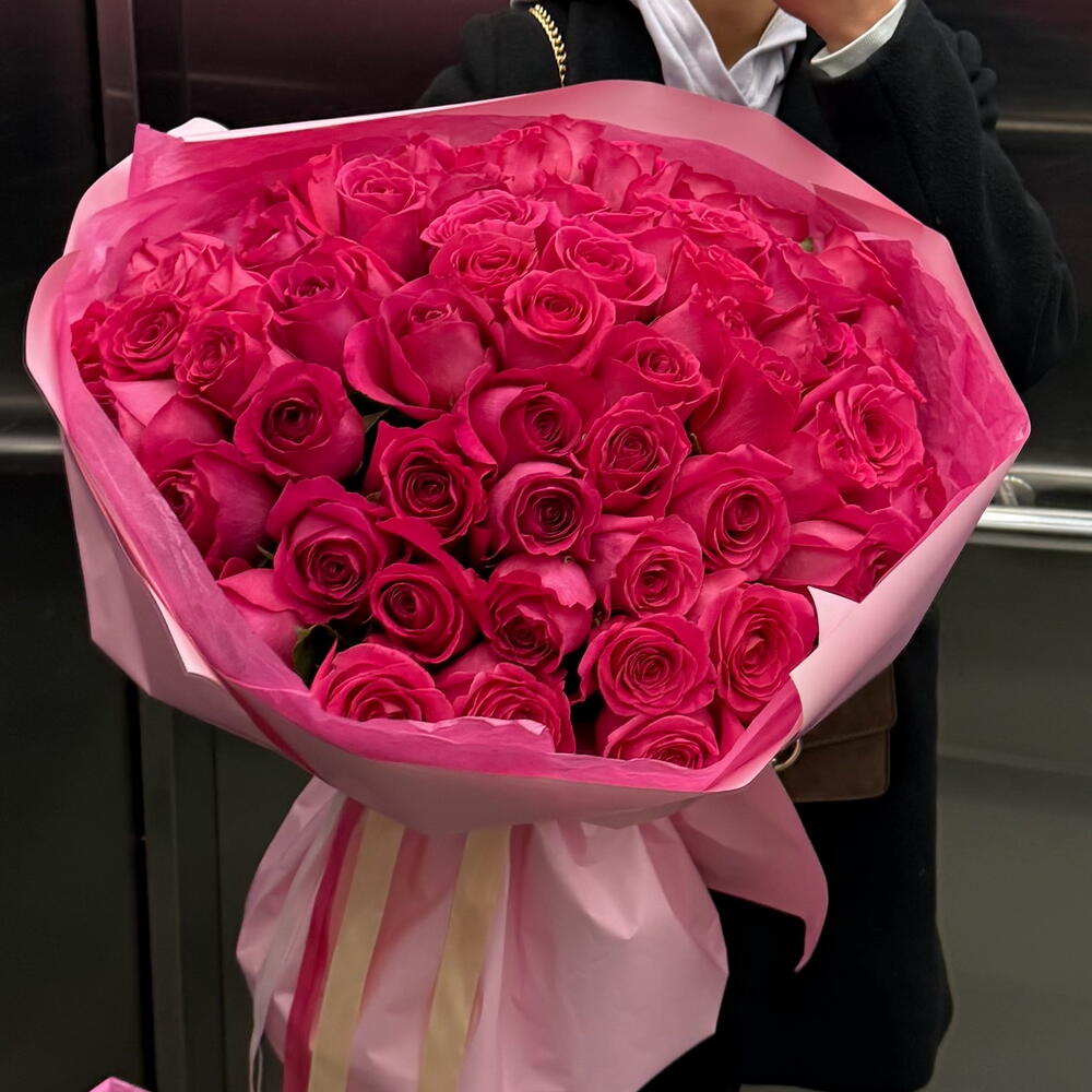 A spectacular bouquet of 51 raspberry roses is the quintessence of elegance, passion, and refined style. The intensely raspberry shade of the petals catches the eye and immediately evokes admiration, creating a composition that makes an impression from the first glance. Each rose has been carefully selected so that together they create a harmonious, luxurious bouquet — full of depth of color, freshness, and unique symbolism. Raspberry roses express admiration, gratitude, and strong, sincere feelings, which is why this bouquet is perfect as a gift for a loved one, an expression of congratulations, or a special gesture for no particular occasion. This is a composition that says more than words — it delights with its intensity, brings a touch of magic, and remains memorable for a long time.