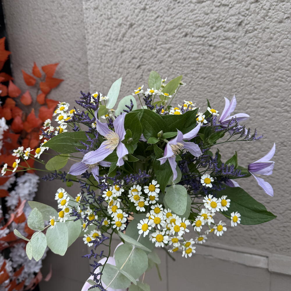Limonium - 2 pcs Clematis - 2 pcs chamomile - 3 pcs eucalyptus - 2 pcs