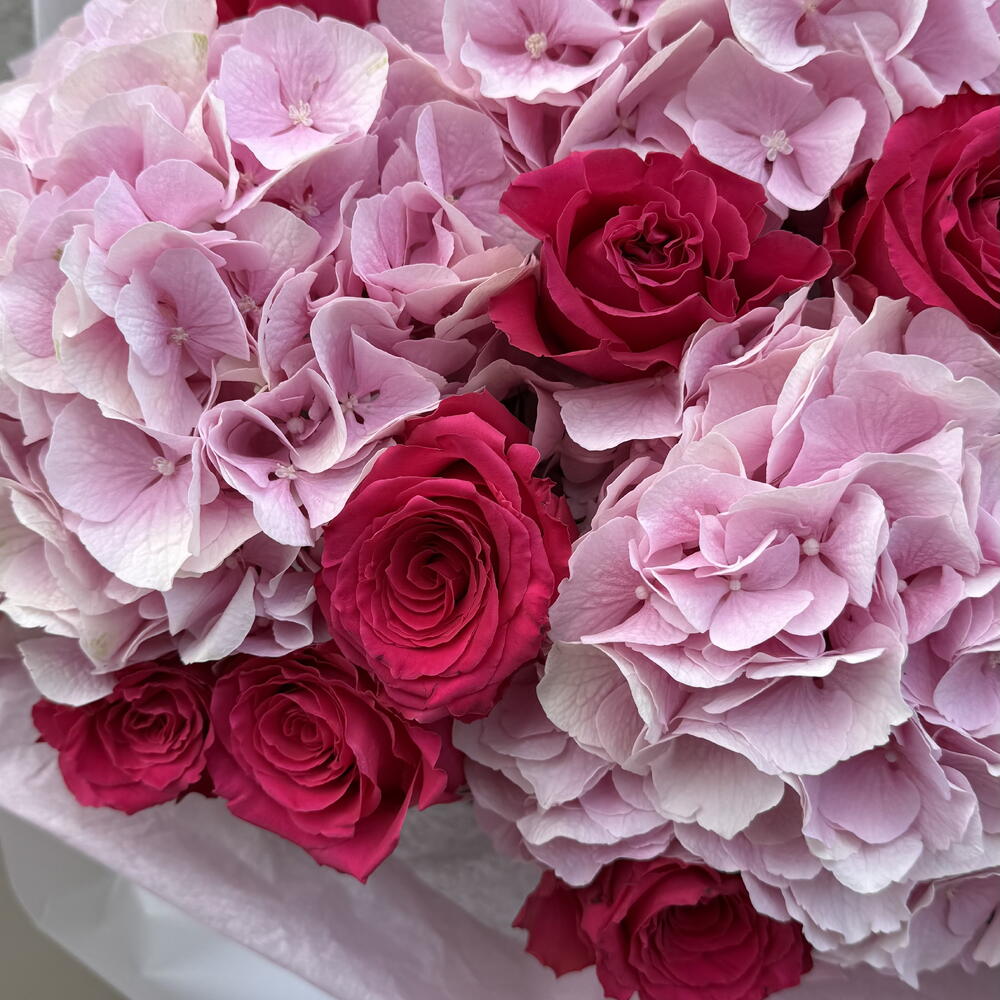 rose - 15 pcs hydrangea - 5 pcs decorative paper - 1 pcs