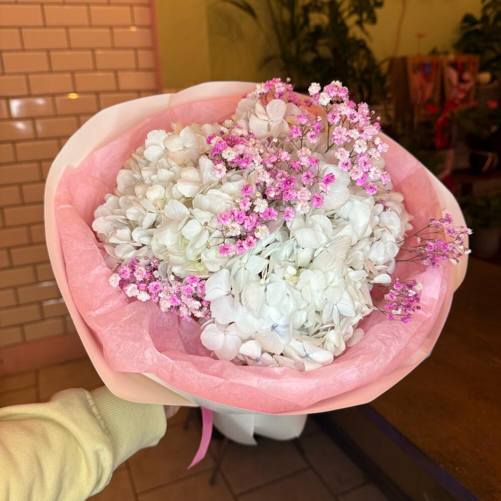 hydrangea - 3 pcs gypsophila - 1 pcs
