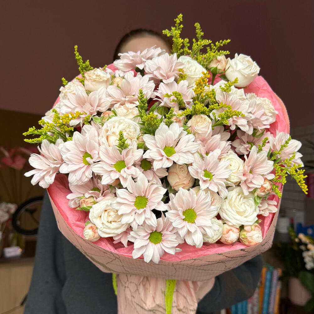 Solidago - 5 pcs spray rose - 5 pcs daisy - 3 pcs decorative paper - 1 pcs