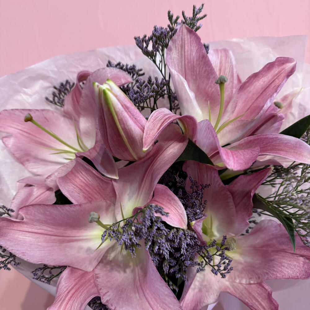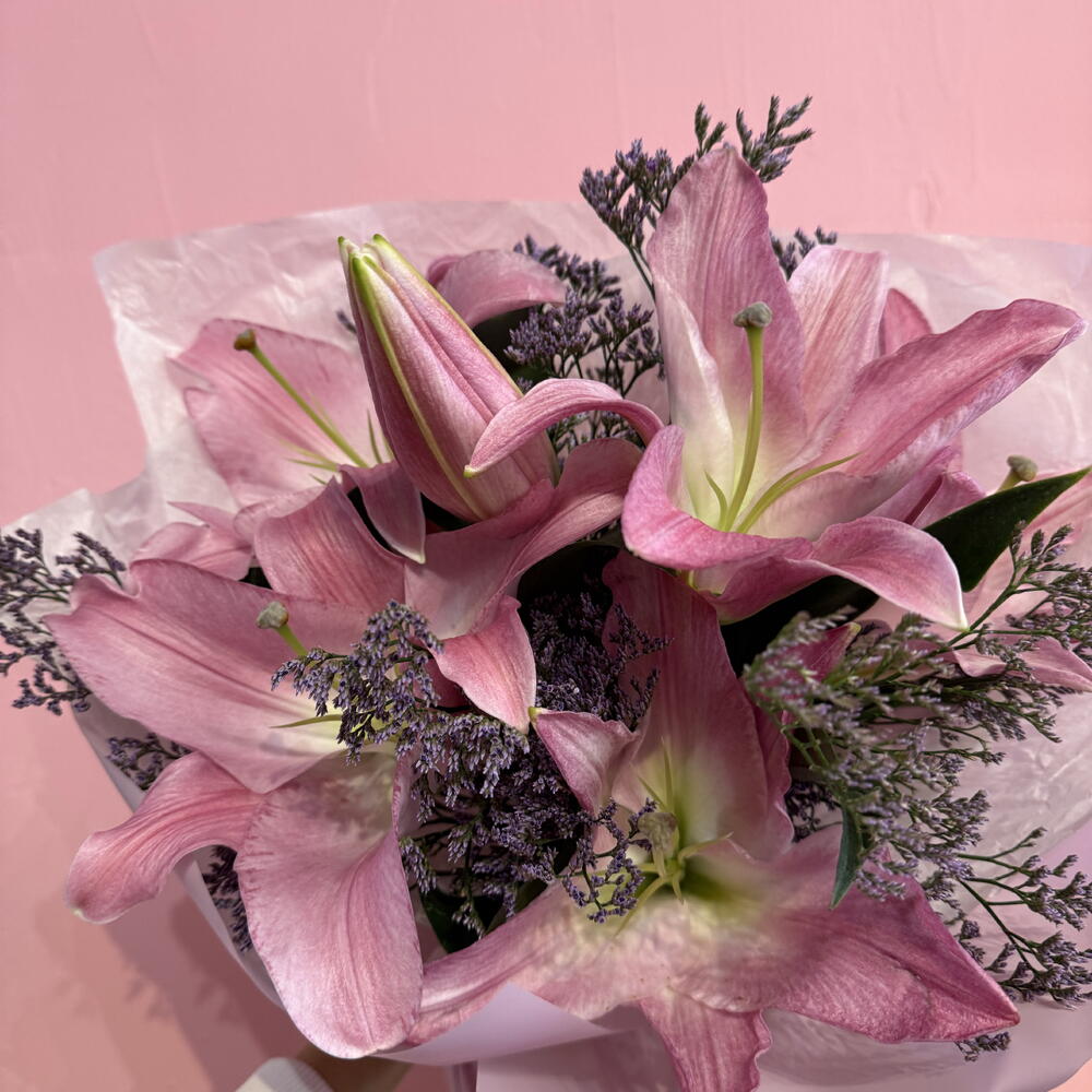 An elegant and subtle bouquet in which majestic lilies meet delicate, romantic limonium. The combination of these flowers creates a harmonious composition with a light, fresh character and a gentle fragrance. Lilies give the bouquet class and grace, while limonium adds lightness and natural charm. It’s the ideal choice for those who appreciate the combination of elegance and simplicity — perfect for special occasions as well as a gesture of gratitude or recognition.