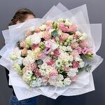 The author's amazing bouquet will be the ideal gift for a true connoisseur of aesthetics and tenderness. It consists of eight lisianthus — these flowers symbolize charm and instability, making them an excellent choice for all lovers. Twenty roses add a note of passion and love to the bouquet, and thirty carnations, symbolizing purity and innocence, give the floral composition a special charm. Exquisite packaging and a delicate ribbon harmoniously complement this floral composition, making it not only a bouquet but a true work of art.