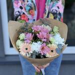 Eustoma - 1 pcs carnation - 3 pcs alstroemeria - 1 pcs eucoliptus - 1 pcs gerbera - 3 pcs