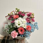 Eustoma - 3 pcs gerbera mini - 3 pcs carnation - 1 pcs chrysanthemum - 1 pcs gypsophila - 2 pcs