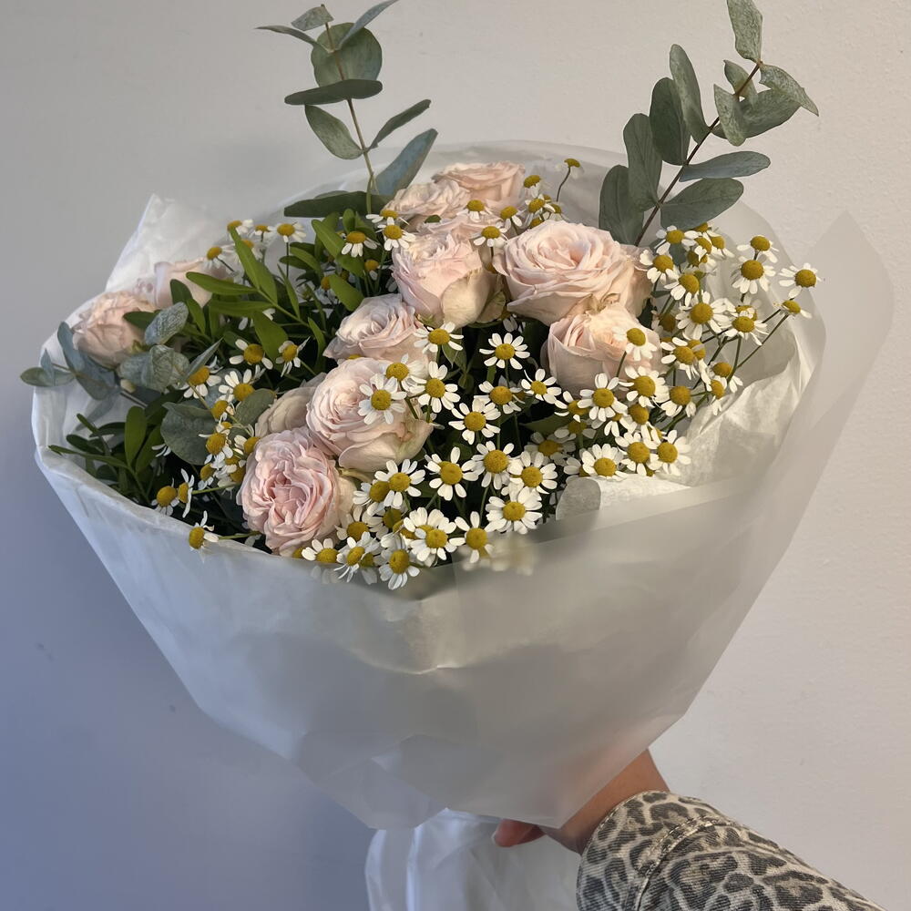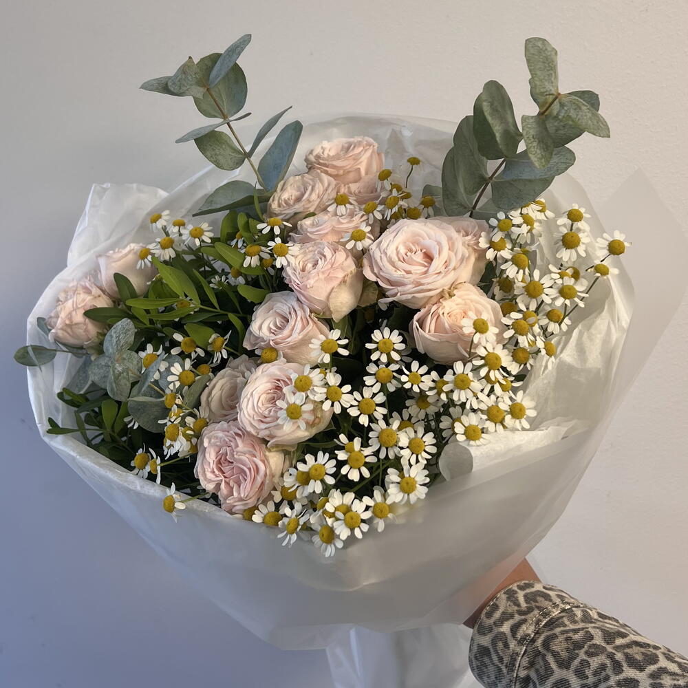 Pistachio - 2 pcs daisy - 4 pcs eucoliptus - 1 pcs Bombastic spray rose - 5 pcs