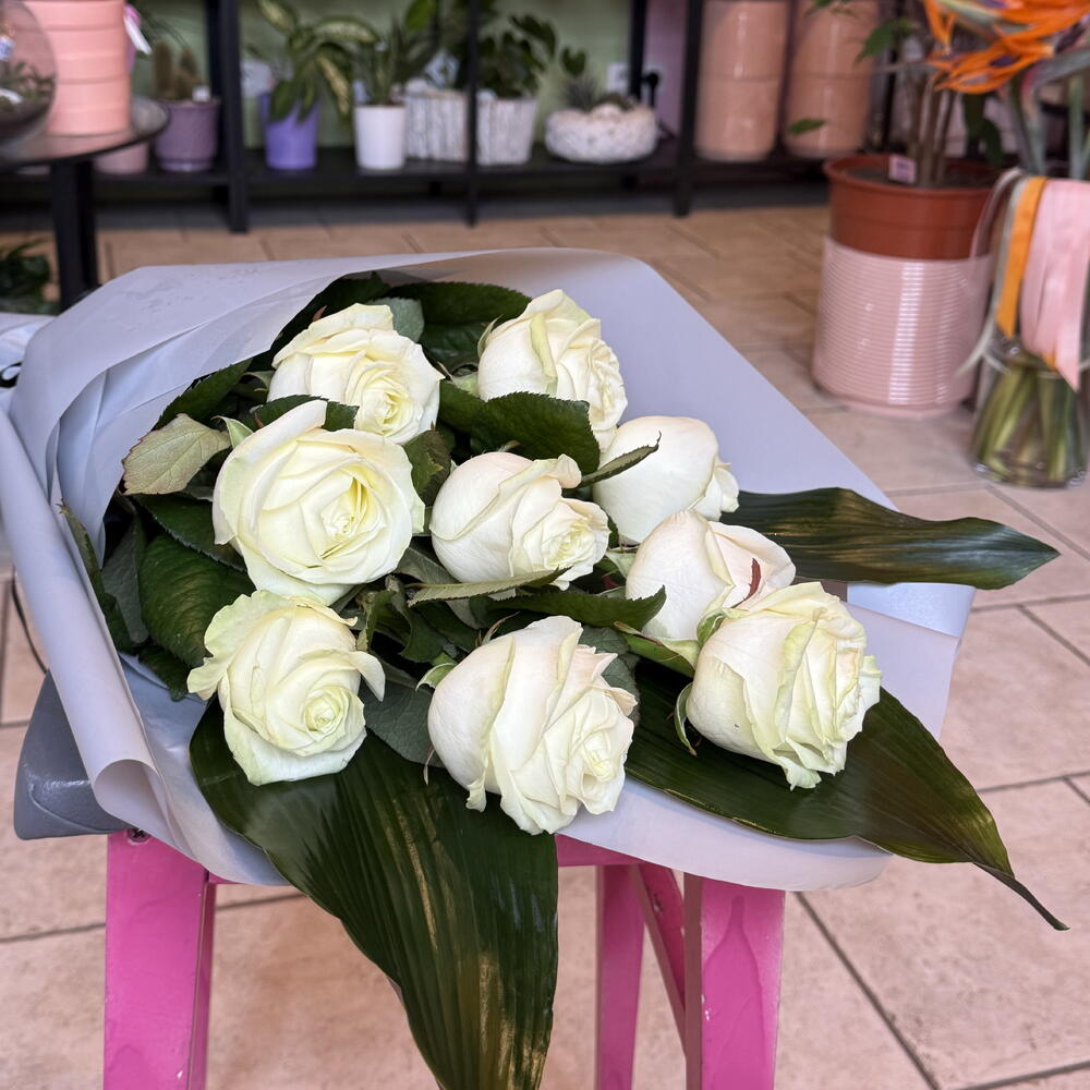 Funeral bouquet of white roses