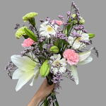 Limonium - 2 pcs Gerbera - 3 pcs lilies - 2 pcs carnation - 7 pcs