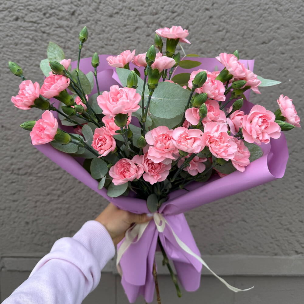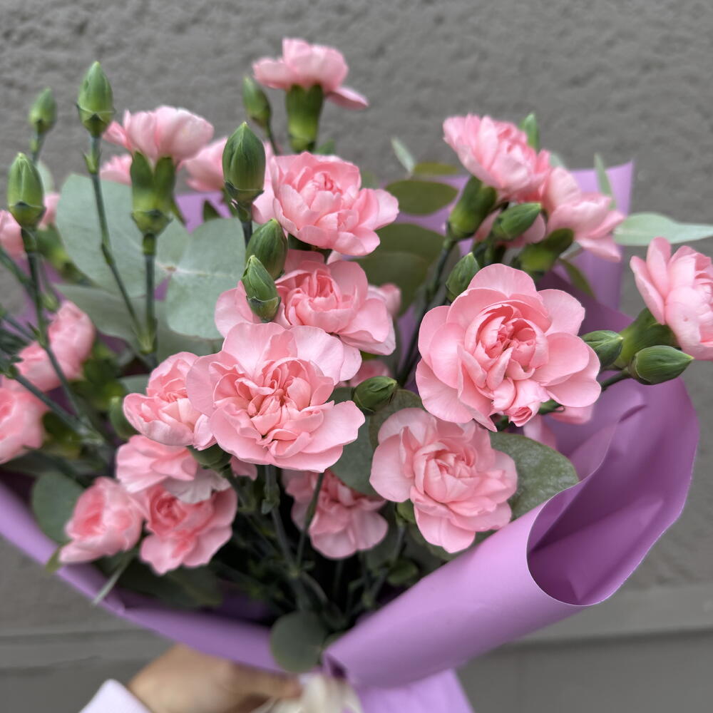 A subtle yet charming bouquet of spray carnations is the ideal choice for those who appreciate delicacy and elegance in a natural form. The abundance of small flowers creates the effect of a light, fluffy arrangement that delights with its freshness and romantic character.