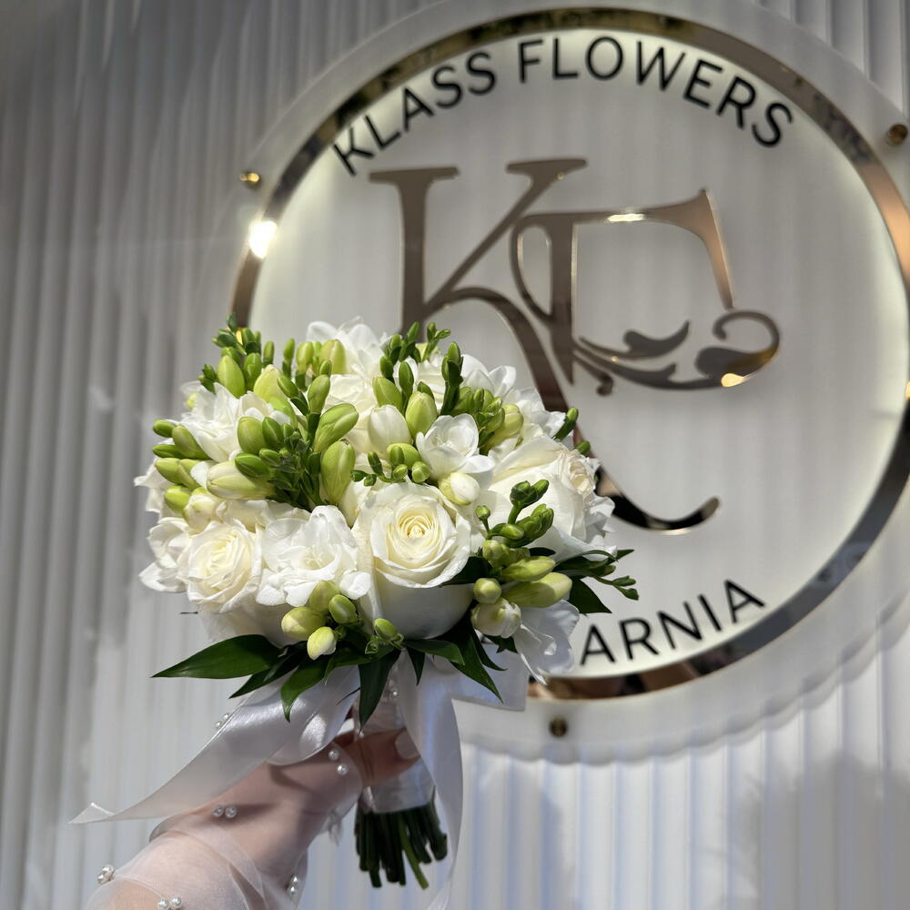 freesia - 10 pcs white roses - 10 pcs