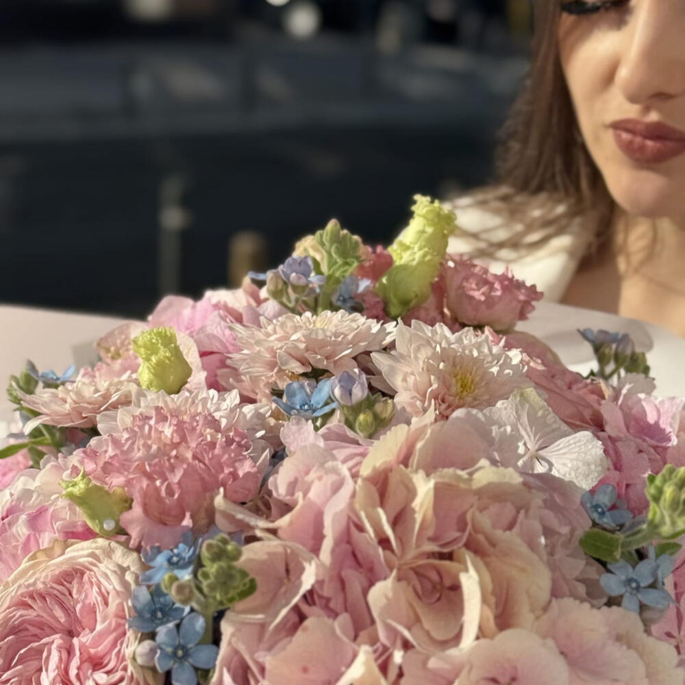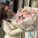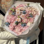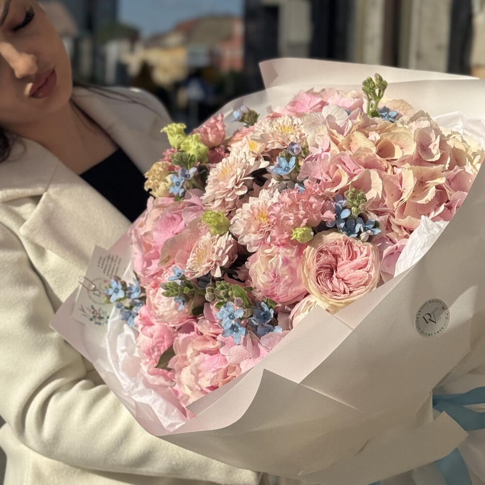 rose - 5 pcs eustoma mix - 4 pcs flower accessories - 7 pcs hryzantema mix - 2 pcs hortensiia - 4 pcs peony or rose - 5 pcs