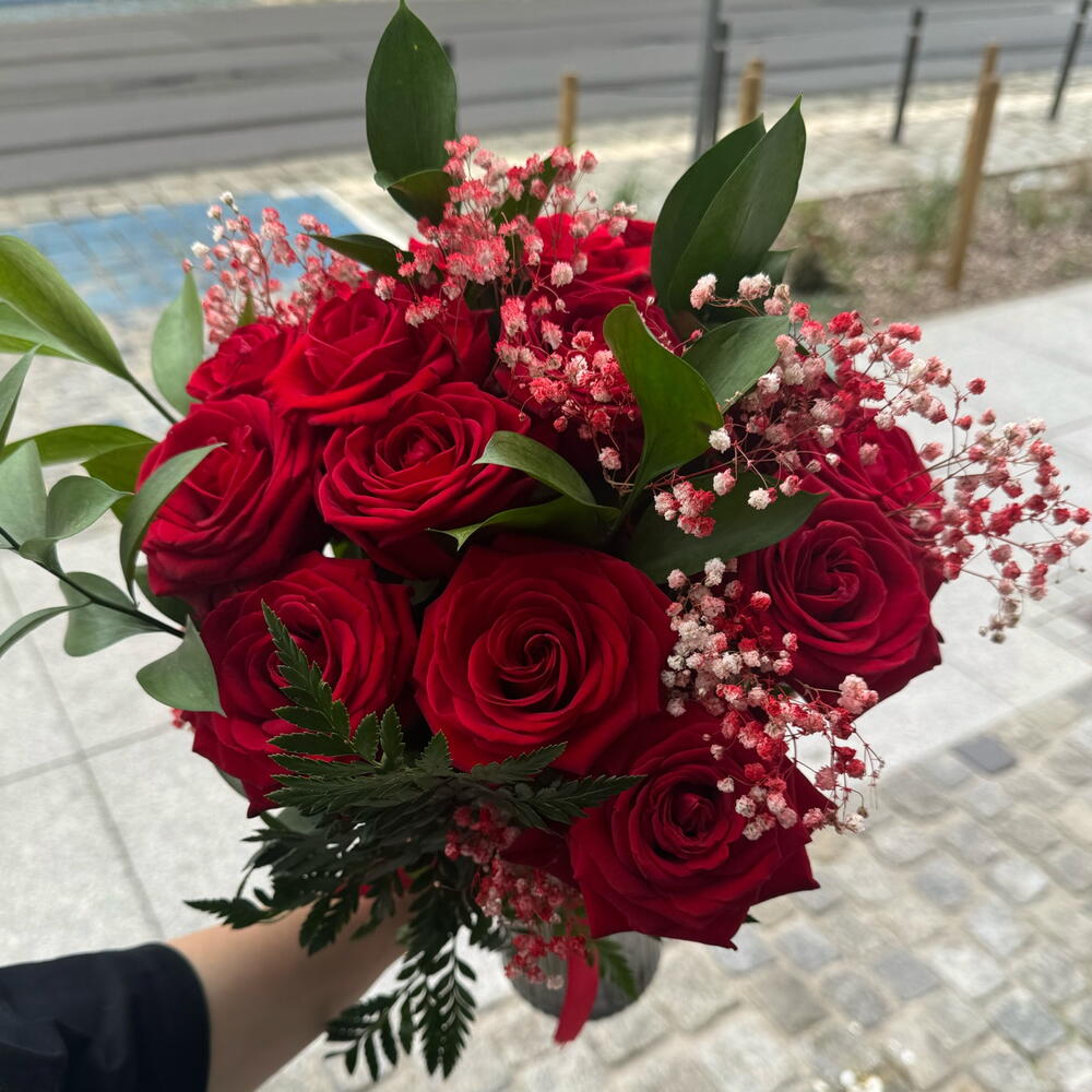 decorative greenery - 6 pcs red rose 60 cm - 9 pcs red baby's breath - 2 pcs