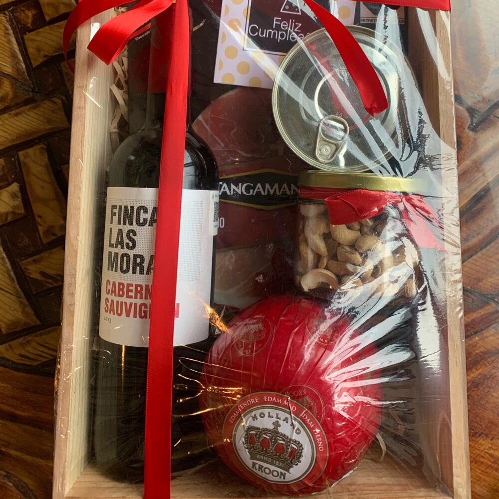 Serrano ham - 100 g vino tinto las moras - 750 ml Kroon Holland Edam cheese mild ball - 840 g nueces de la india - 100 g