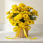 Este encantador centro de flores es la mezcla perfecta de la naturaleza y la artesanía. Compuesto por 5 unidades de pino, proporcionando un fresco aroma del bosque, 10 flores de Vikingos que añaden un toque de elegancia, y 10 conchas amarillas que le dan un acento de color vibrante. Todo ello magistralmente organizado en una caja de madera artesanal que agrega un ambiente rústico a cualquier habitación. Es la elección perfecta para embellecer tu hogar o como un regalo significativo para alguien especial.