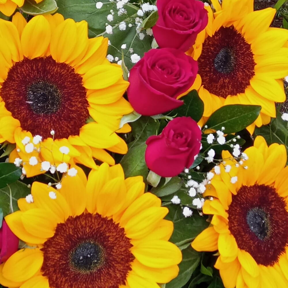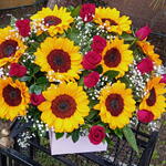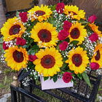 rosas rojas - 20 pcs gipsophilia - 8 pcs girasoles medianos - 10 pcs