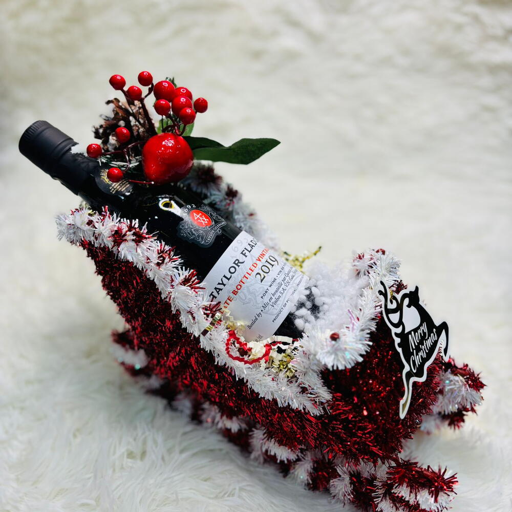 pinecone - 1 pcs decorative christmas sleigh - 1 pcs a wine bottle - 1 pcs festive décor with berries - 1 pcs winter florals snow accents - 1 pcs