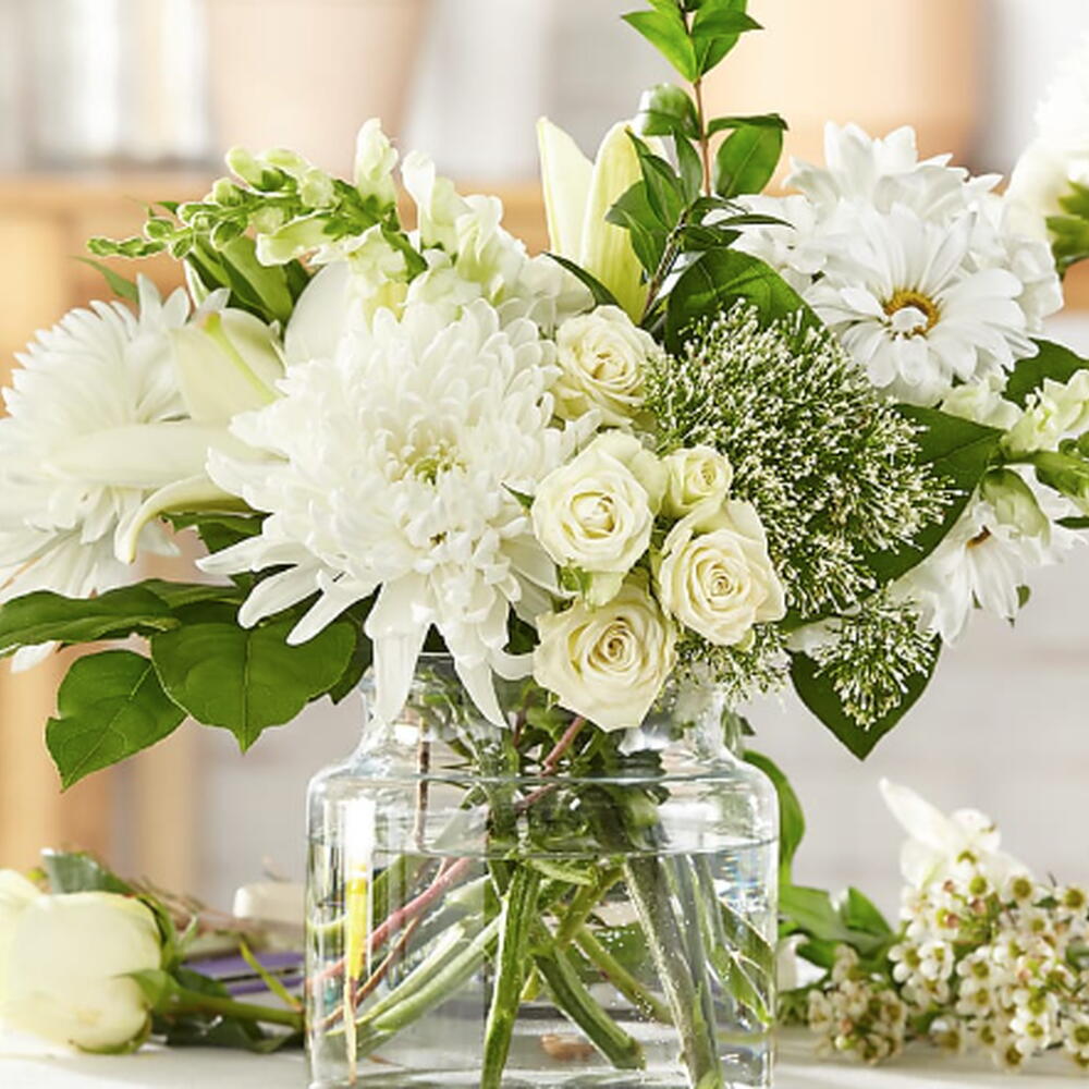 Classic Ivory (mums, spray roses, snap + vase)