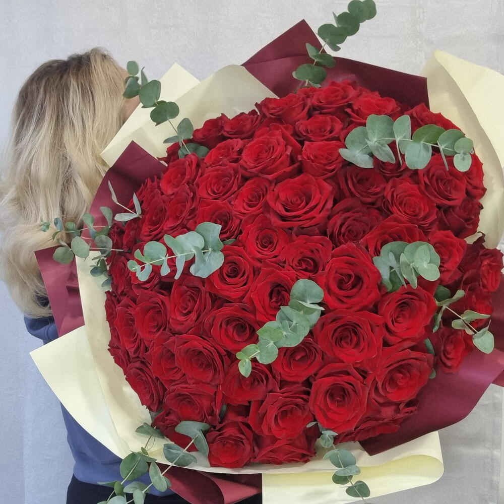 Classic Red Roses Bouquet - 75 Roses