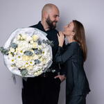 Букет красивый получился. Доставили немного позже назначенного времени, не критично для нас это было. Фото отчет сделали быстро. Доставка считаю дорогая, плюс большие розы не первой свежести были.