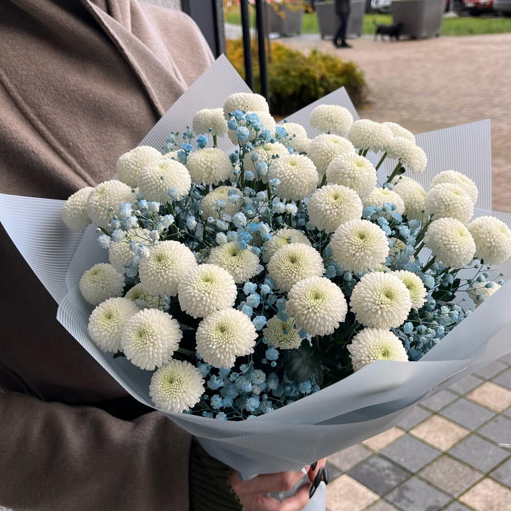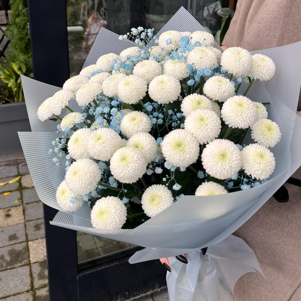 Chrysanthemum white - 9 pcs gypsophila flower - 2 pcs decorative wrapping - 2 pcs