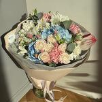 lagurus - 5 pcs anthurium - 1 pcs hydrangea - 1 pcs chamomile - 1 pcs eucalyptus - 5 pcs astromeria - 2 pcs spray rose - 1 pcs carnation - 6 pcs