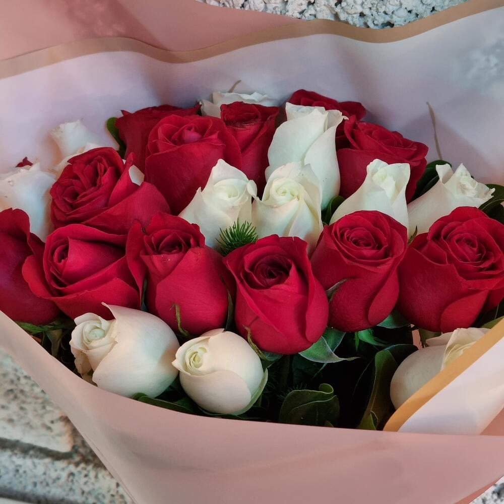 rosas blancas - 24 pcs rosas rojas tallo largo - 24 pcs papel coreano - 2 pcs