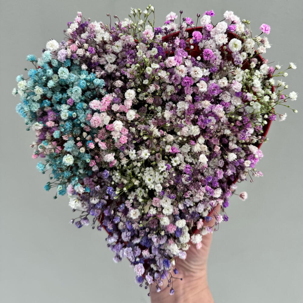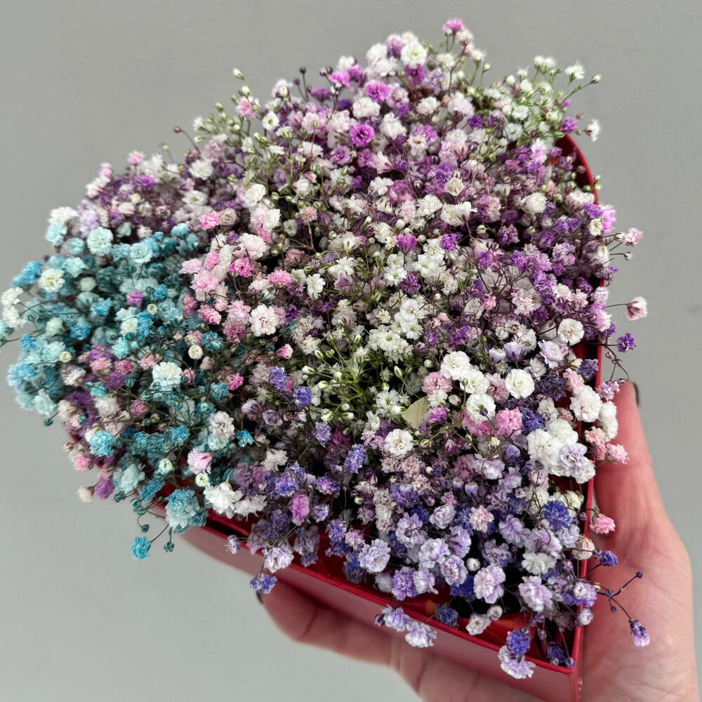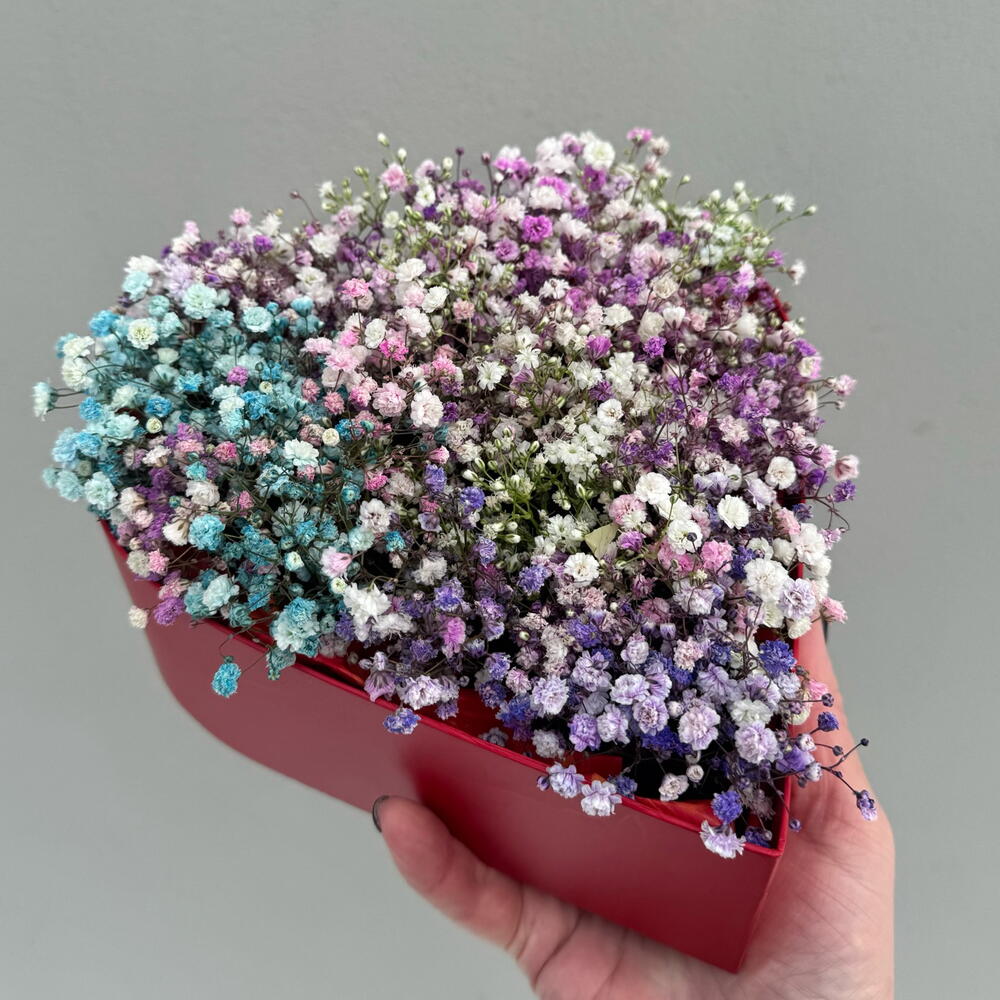 gypsophila rainbow - 10 pcs heart box - 1 pcs