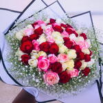 gypsophila white - 1 pcs red roses - 20 pcs pink roses - 20 pcs white roses - 20 pcs