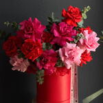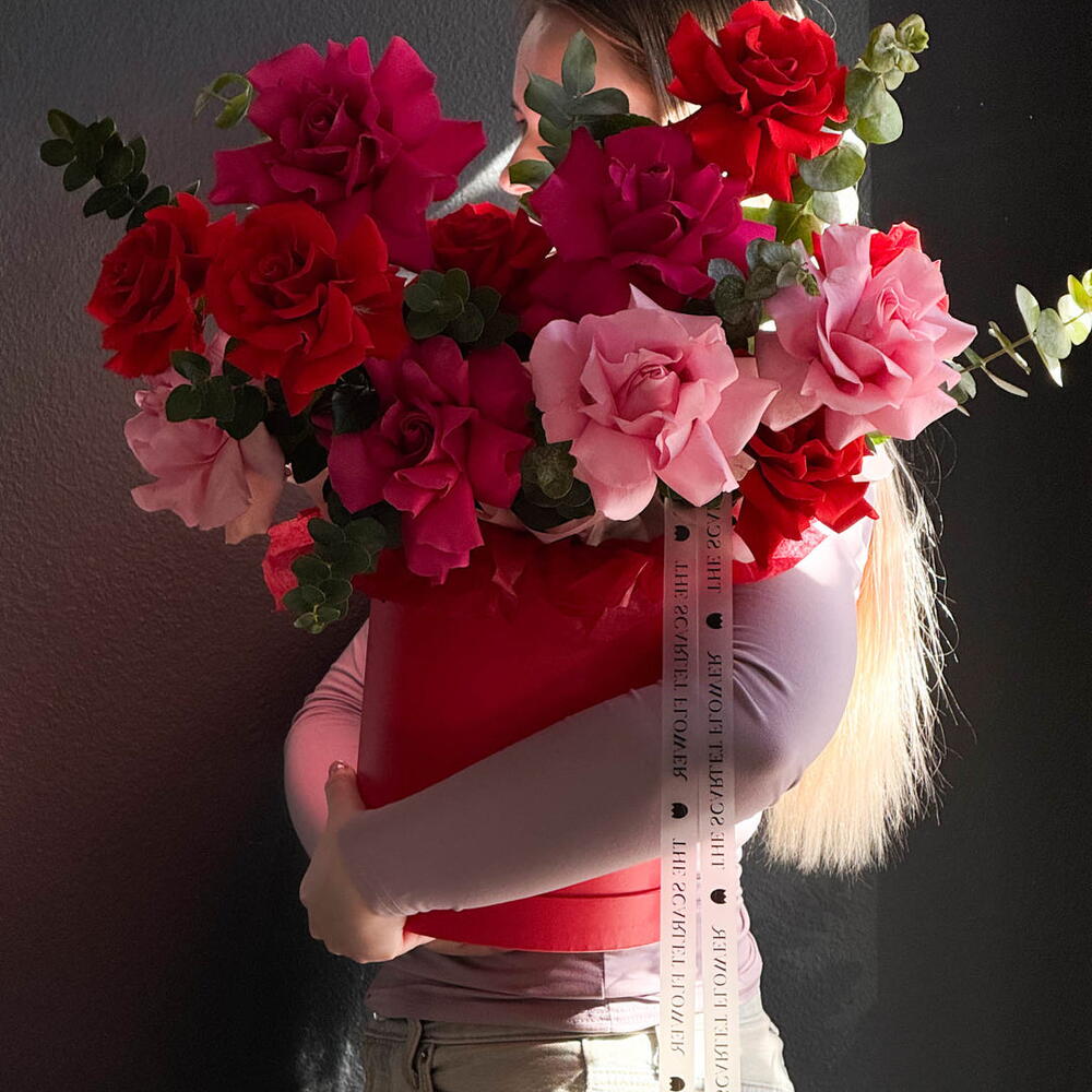 A vibrant arrangement of red and pink roses in a stylish box, full of passion, contrast, and bold elegance🌹