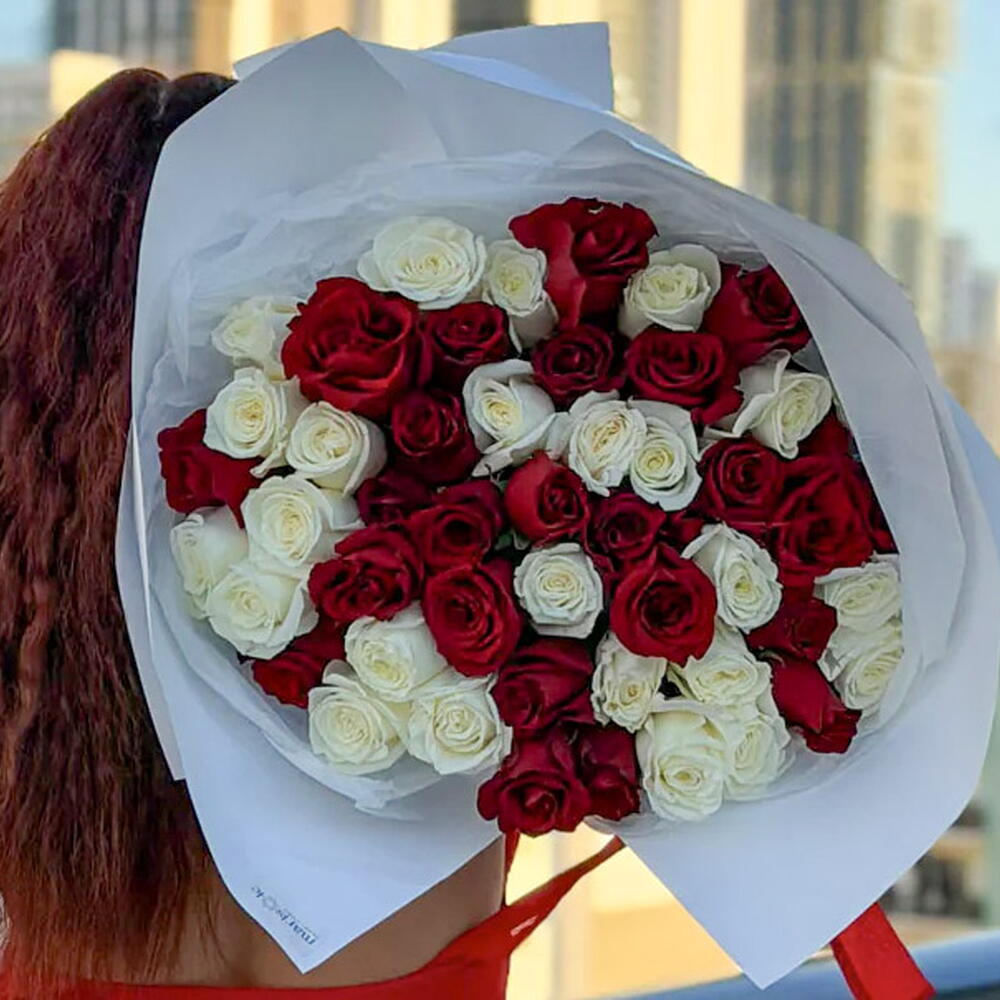Celebrate timeless romance with our Eternal Love Bouquet, a stunning arrangement of deep red and pristine white roses. This classic combination symbolizes passion and purity, making it the perfect gift for anniversaries, proposals, or expressing your deepest affection. Each rose is hand-selected and expertly arranged to create an elegant, long-lasting display. Whether youre marking a special milestone or simply saying I love you, this sophisticated bouquet delivers heartfelt emotion with natural beauty. Ideal for flower delivery and guaranteed to impress. The actual bouquet may slightly vary from the photo. Colors, shades, and the natural shape of the flowers can differ, but the style and quality always stay the same.