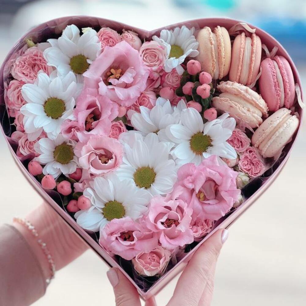 Macarons - 5 pcs chrysanthemums - 6 pcs roses - 5 pcs