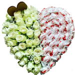 Box - 1 pcs Raffaello candies - 40 pcs Oasis - 3 pcs rose - 29 pcs postcard - 1 pcs baby's breath flowers - 1 pcs