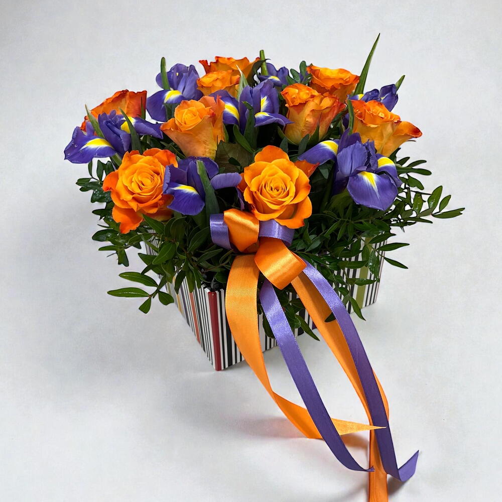 Roses with iris in the box