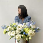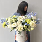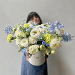 Statice - 6 pcs Eucalyptus - 7 pcs Lisianthus - 8 pcs Decoration - 4 pcs dianthus - 5 pcs oxypetalum - 7 pcs dilfinium blue - 5 pcs