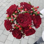 Gypsophila - 3 pcs hypericum - 5 pcs rose ecuador - 7 pcs