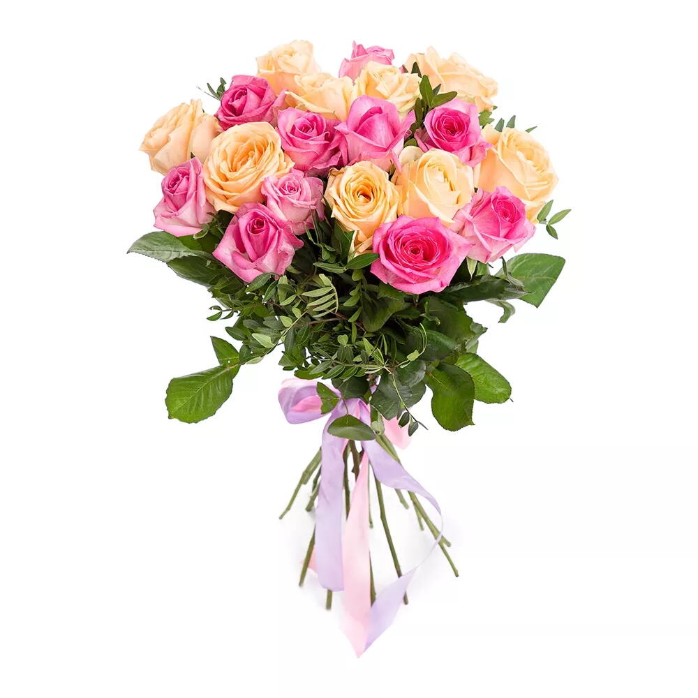 pink rose - 10 pcs cream rose - 9 pcs ribbon - 1 pcs green plants - 5 pcs