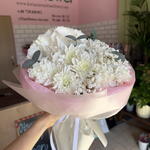 gypsophila - 1 pcs hydrangea - 1 pcs eucalyptus - 2 pcs carnation - 5 pcs daisy - 2 pcs