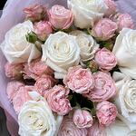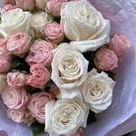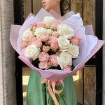 white beach - 8 pcs packaging design - 3 pcs ribbon satin - 1 pcs bombastic spray rose - 9 pcs