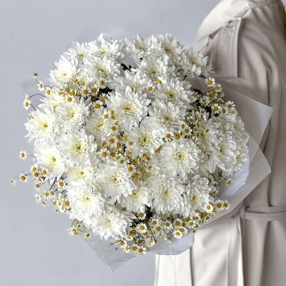 Дуо букет хризантема Алтай с танацетумом
