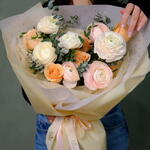 roses - 1 pcs a bouquet featuring lush ranunculus - 1 pcs and greenery. - 1 pcs