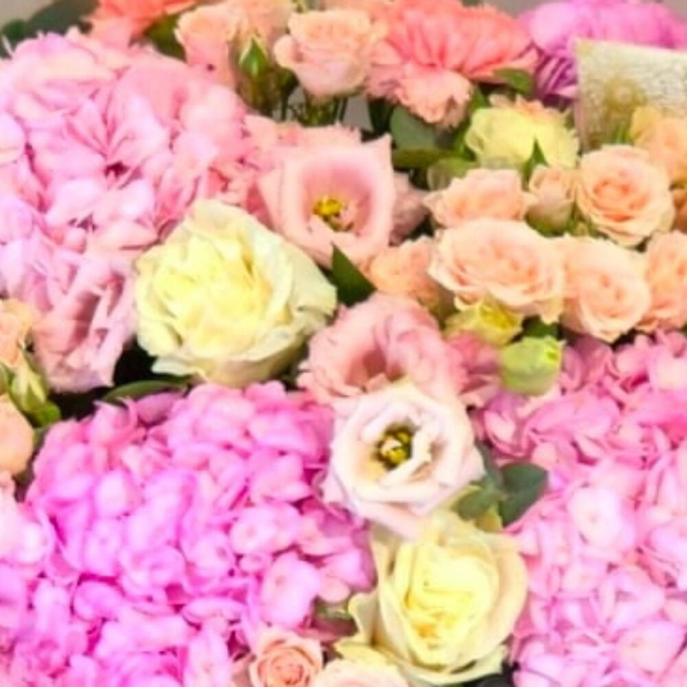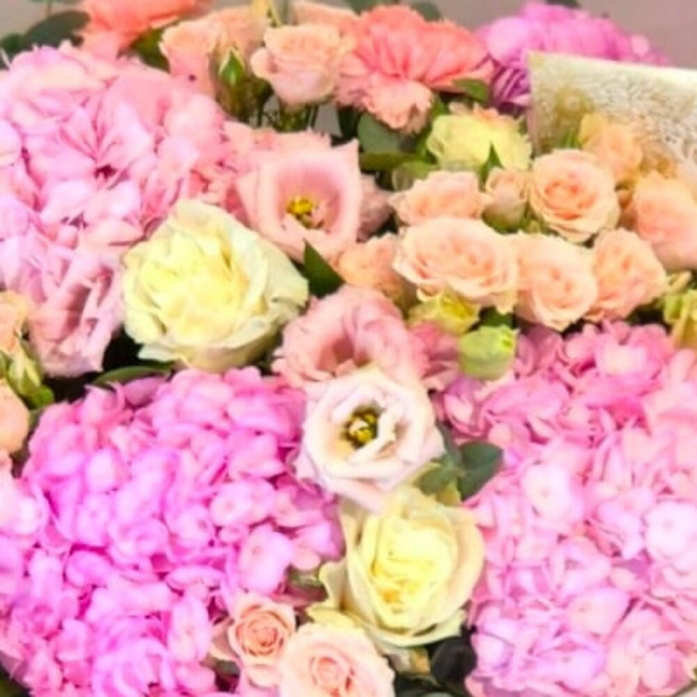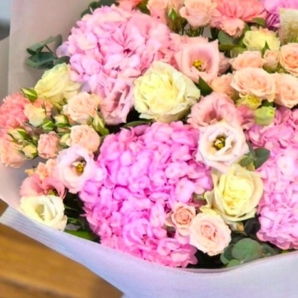 Hydrangea - 4 pcs decor - 4 pcs eustoma mixed color - 11 pcs