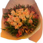 liston satinado personalizado 30cm - 1 pcs pastel roses - 24 pcs alstroemerias roses - 20 pcs pink Korean paper - 2 pcs