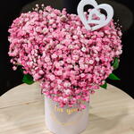 Box - 1 pcs Gypsophila - 5 pcs Ruskus - 3 pcs heart - 1 pcs