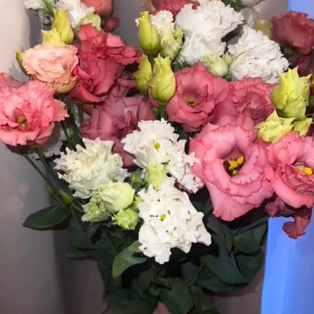 Eustoma white - 8 pcs pink eustoma - 7 pcs