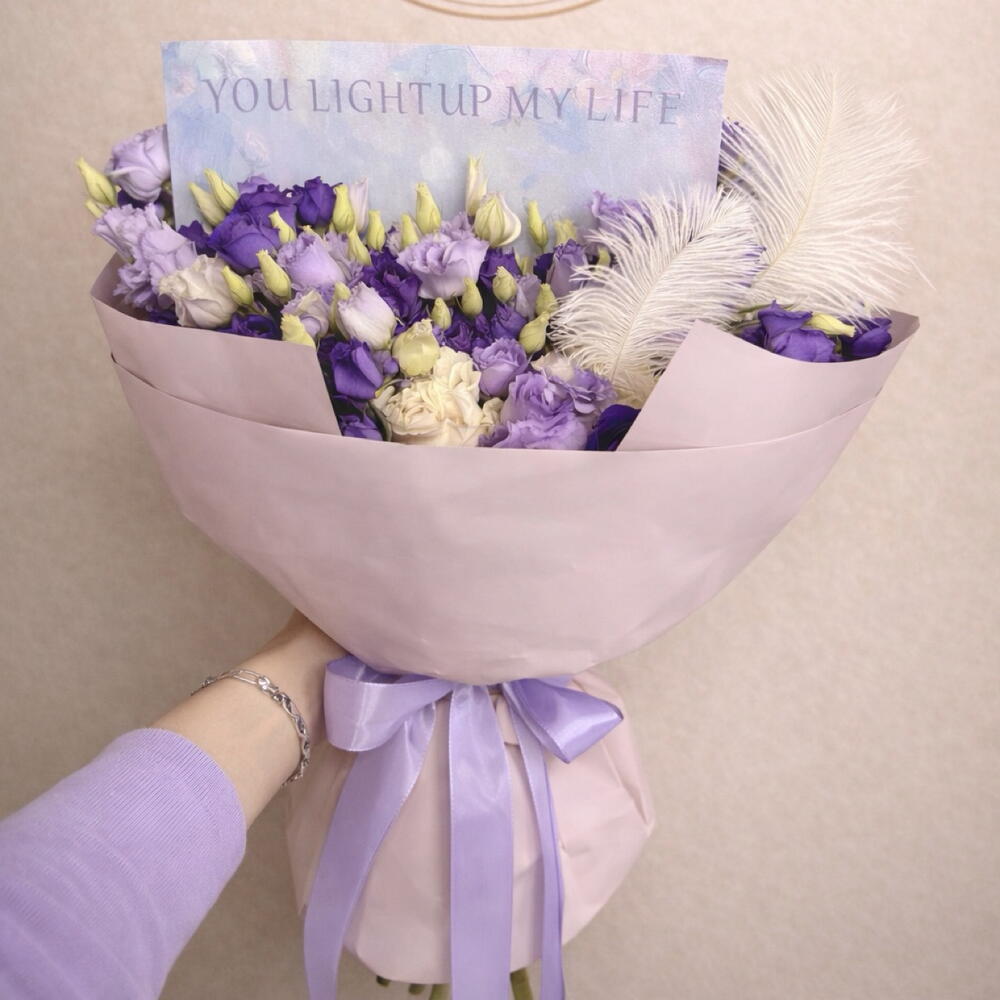 Dieser luxuriöse Mono-Strauß wird Sie mit der Frische und Leuchtkraft seiner Blüten begeistern. Er besteht aus 18 prachtvollen Lisianthus und 10 edlen, pfingstrosenähnlichen Rosen. Für Kenner und wahre Liebhaber echter Schönheit.