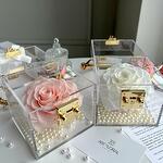 Ewige Rose im Acryl Cube Rosa