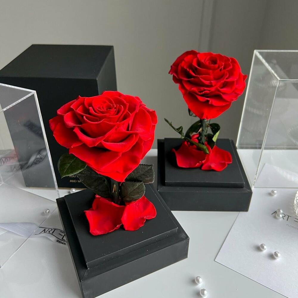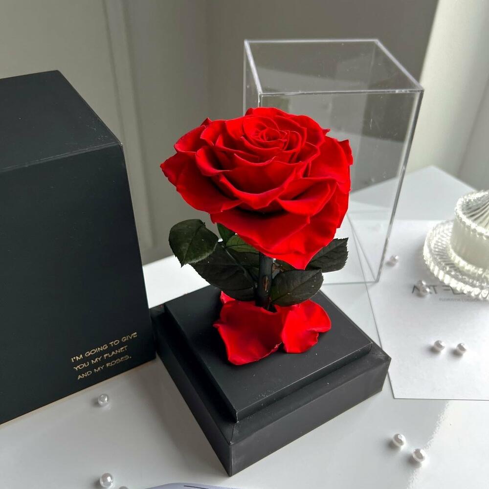 Ewige rote Herz-Rose im schwarzen Acryltower. Tauchen Sie ein in die zeitlose Schönheit und unendliche Zärtlichkeit mit unserer ewigen roten herzförmigen Rose, präsentiert in einem eleganten Acryltower und umgeben von einer edlen schwarzen Geschenkbox. Diese faszinierende Rose verkörpert nicht nur die Leidenschaft der Liebe, sondern auch die ewige Hingabe, die sie symbolisiert. Die herzförmige Rose wurde mit größter Sorgfalt ausgewählt und durch einen speziellen Konservierungsprozess bewahrt, um ihre leuchtende Schönheit und einzigartige Form für alle Zeiten zu bewahren. In einem tiefen Rot strahlt diese Rose nicht nur Sinnlichkeit, sondern auch Beständigkeit aus. Der Acryltower schafft eine faszinierende Kulisse für die herzförmige Rose und betont ihre Schönheit auf einzigartige Weise. Die edle schwarze Geschenkbox bietet nicht nur eine stilvolle Präsentation, sondern symbolisiert auch die Eleganz und Geheimnisvolles. Diese ewige rote herzförmige Rose im Acryltower mit schwarzer Geschenkbox ist nicht nur ein atemberaubendes Geschenk für besondere Anlässe wie Valentinstage, Jubiläen oder Hochzeiten, sondern auch eine zeitlose Erinnerung an die Liebe, die für immer währt. Verleihen Sie Ihrem Zuhause, Büro oder jedem anderen Raum mit dieser faszinierenden Rose einen Hauch von romantischer Eleganz und unvergänglicher Schönheit. Die Lieferung erfolgt in schwarzer Geschenkverpackung. Jetzt ganz bequem bestellen und an Ihre Wunschadresse liefern lassen.