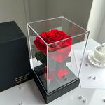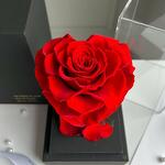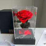 Ewige rote Herz-Rose im schwarzen Acryltower